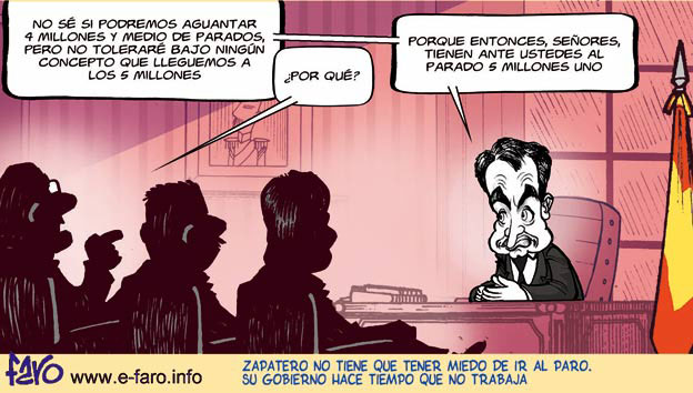 Y para finalizar, para Zapatero el problema del paro es simplemente una “cuestión de limosnas”, sin pararse a pensar que los parados no queremos que nos den una limosna, queremos un trabajo acorde a nuestras capacidades, pero para eso señor Zapatero hay que crear industria, no destruirla subiendo IVAs e impuestos.