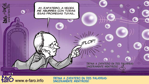 La curiosa manera que tiene de hacer política el Sr.Zapatero es la mentira, mentir, mentir y mentir, convirtiendo la mentira en un instrumento de hacer política siendo él un practicante fiel. Lo que pasa es que últimamente las mentiras son tan poco “creibles” que ya no sabe ni mentir.
