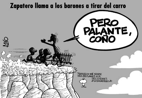 Es demencial… pero Rajoy está quietecito esperando a ver pasar el cadáver de su enemigo, le beneficia la situación cuanto peor mejor, y ZP no sabe que hacer y simplemente está intentando flotar, como un corcho por encima de los problemas, esperando a que escampe, esa es su gran solución… es que son todos taaaaann listos !!!!!