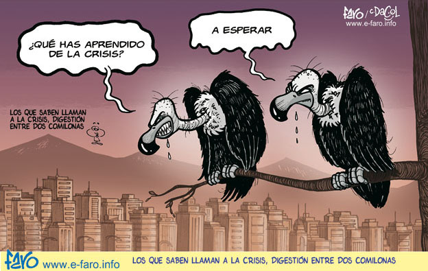 Para aquellos que tengamos memoria ya sabemos lo que es una crisis, es simplemente el intervalo entre dos épocas de bonanzas, creadas siempre de una manera ficticia esta vez ha tocado la excusa de las hipotecas basura, otra vez que si el petróleo se iba a acabar, otra que si la adhesión de los países del este... en el fondo es simplemente una recogida de la cosecha de estos sinvergüenzas que manejan las finanzas del mundo, pasará esta crisis y hasta la siguiente, y mientras a "engordar el gorrino".