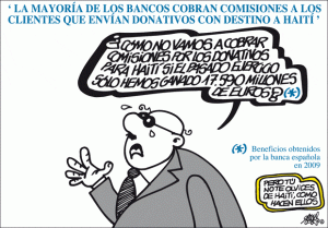 Y encima ese dinerito que tienen en el banco ¿Dónde va?  Pues partidos políticos, más chanchullos, más blanqueos de dinero… ahí está, porque el día que el banco la caga y pierde dinero, para eso está el ciudadano de a pie, para eso está el quitar la casa a las familias por no poder pagar, para eso está subir las comisiones de servicio.