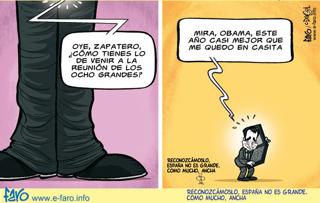 Quizás los historiadores dentro de unas décadas expliquen como el tandem Aznar-Zapatero llevó a este país a la mierda para muchas décadas. El primero porque infló falsamente un país con una burbuja inmobiliaria para entrar en el euro como un país grande, y Zapatero como después de pinchar esa burbuja nos hizo caer, a toda velocidad y darnos cuenta que España nunca ha sido grande, ni lo será mientras no pensemos como nuestros vecinos europeos. Un país no puede ser grande con políticos corruptos, sin tejido empresarial y con más de 1 millón de empresas de menos de 5 trabajadores. Ahora nos ahogaremos en nuestro propio euro.