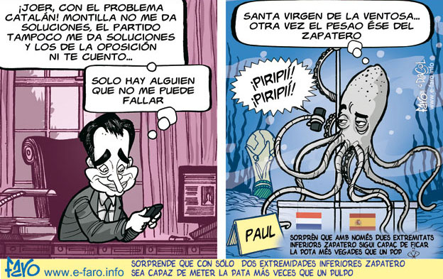 Parece ser que nuestros políticos acaban de fichar a un asesor que nunca falla: El pulpo Paul, y encima nos sale muy bien de precio ya que solamente cobra... un mejillón por consulta. Podrían aprender algunos políticos a acertar... y a cobrar por su trabajo, no por su cara.