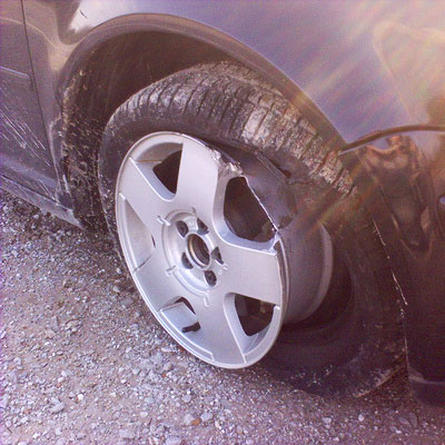 Un reventón con suerte. En este caso no ha habido accidente pero imaginemos esta rueda así a 120Km/h, eso si, luego pasaremos a engrosar las víctimas de los despistes de la DGT
