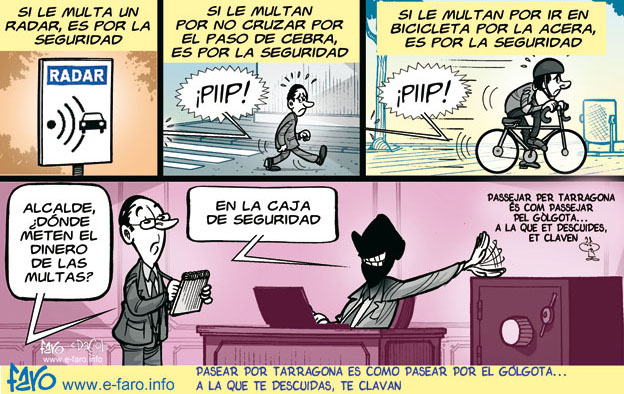 La DGT y los ayuntamientos han convertido la coletilla de "por tu seguridad" en un sinónimo de expolio al ciudadano para que, excusándose en una vigilancia digna de "El Gran Hermano", sacarnos todo el dinero que pueden de nuestros bolsillos. Este chiste se lo dedico al amigo Álvaro de antirradares.net.