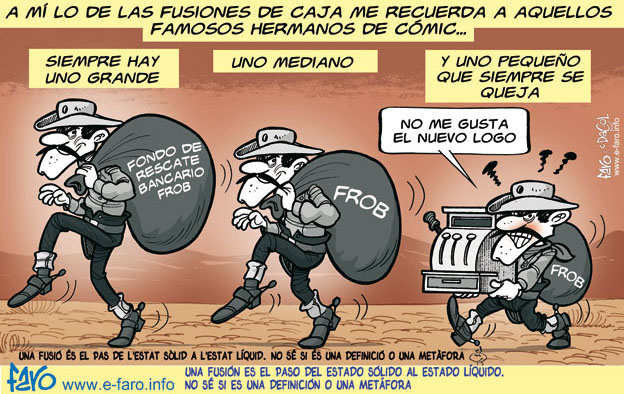 El tema de la banca, el de las fusiones, el de las cajas... en el fondo es todo lo mismo, robarnos el dinero sin que nos enteremos como cuatreros de guante blanco, eso si, todo muy legal porque ya he definido en otros artículo que legal no significa moral, sino que está dentro de la ley, ley que hacen estos propios delincuentes de guante blanco.