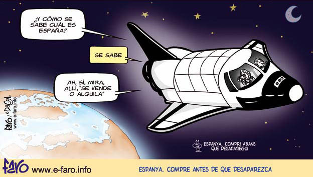 Recordemos chistes del pasado... este concretamente es del verano del 2009, justo cuando comenzó esta crisis que parece no tiene fin, solo que por entonces nos decían que "solo eran un par de años y que despegaríamos"... pero ya hemos visto como ha ido todo, primero rescatamos a los bancos con nuestro dinero, luego nos la devolvieron con la crisis del ladrillo, los ERES y los despidos, luego pidieron despido libre para poder ponernos en la calle cuando les apeteciera y ahora, de postre, una crisis de deuda que nadie sabe quién la ha creado (los políticos que se han puesto a despilfarrar) pero que quieren la paguemos los ciudadanos sin comprender QUE YA NO LE QUEDA QUE DAR... Eso si, a prepararse para una subida de impuestos POR LA CARA.