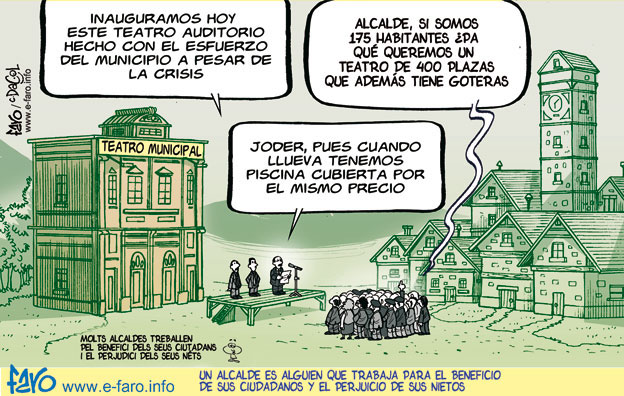 Hoy comenzamos nuestro artículo semanal con un chiste que refleja el gran problema del despilfarro autonómico, donde se ha construido inútilmente para que los amigos pudieran llevarse dinero público. Incluso a día de hoy con la crisis que estamos padeciendo nos encontramos como fomento está realizando faraónicas obras innecesarias pero que le da "dinerito" al amigo de la escavadora.