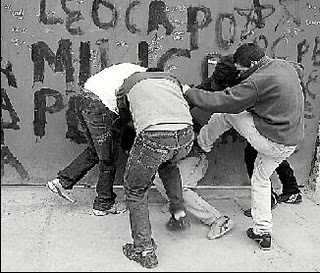 Mi hermano tiene un hijo que el pasado mes de Octubre cumplió los 18 años pero que aún se encuentra estudiando la ESO ya que perdió un par de cursos por una enfermedad que ahora no viene al caso. Bueno la cuestión es que mi sobrino se encuentra en clase con niños de 16 años que, como es “el diferente de la clase” la han tomado con él. Pues bien el otro día a la salida del colegio una panda de estos indeseables fueron a por él para pegarle. Mi sobrino que es un chicarrón bastante grande (pasa del 1.80) al ir a defenderse le metió un puñetazo a uno de estos niñatos.