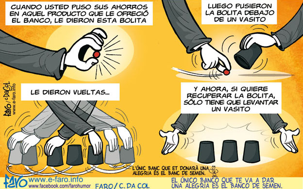 Nada como un plan de pensiones para darse cuenta de esto. Los bancos cogen nuestro dinero y con él en vez de ser reinvertido en crear empleo y sanear empresas se dedican a jugar a la ruleta con otros bancos y claro, cuando se pasan de listos como con los bonos basura americanos pues lo tenemos que pagar todos.