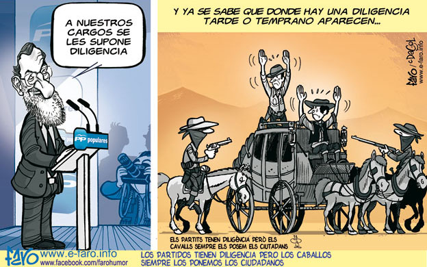 Después de que el fin de semana no pusiéramos la habitual tira de chistes de FARO hoy volvemos nuevamente a lo habitual. Los políticos... en fin, ya sabemos que sea cual sea el resultado de las elecciones quién gana siempre y quien pierde siempre, el súbdito de su borbónica majestad.