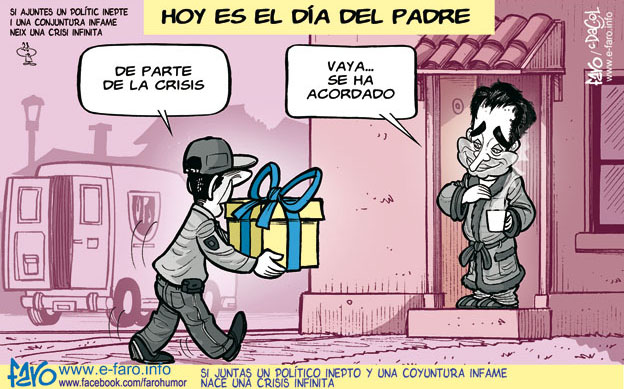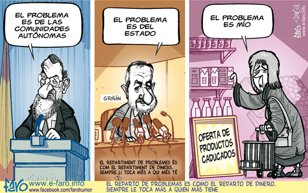Hoy comenzamos nuestra sección de humor en este fin de semana en donde nos cambian la hora con una reflexión... Rajoy habla de crisis, Griñán habla de crisis, Rubalcaba habla de crisis... ¿Pero que crisis tienen estos si siguen cobrando sueldos estratosféricos, no los pueden despedir con el despidito baratito y encima se lo suben todos los años? que se vayan a la mierda... a la mierrrrda. Aquí quién tiene el problema y la crisis es el súbdito de a pie, el que tiene que comprar en el Carrefour y se da cuenta que comprando cuatro cosas la cuenta le pasa de 100 euros y encima, no tiene trabajo.