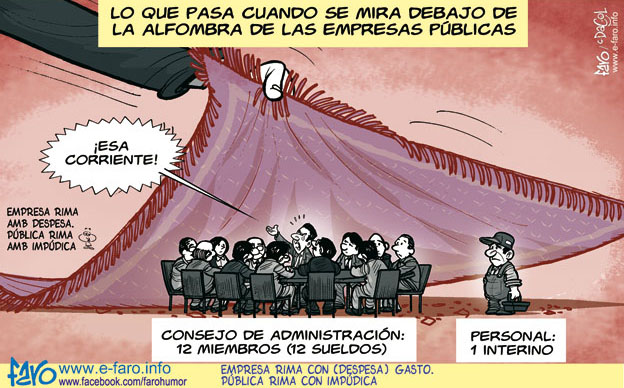 No hay dinero para educación, no hay dinero para sanidad... solo hay dinero para los sueldos de los políticos ¿suspensión de pagos de nominas? nunca, antes se deja de pagar a un proveedor o de poner calefacción en un colegio que dejar de pagar al cargo político de turno.
